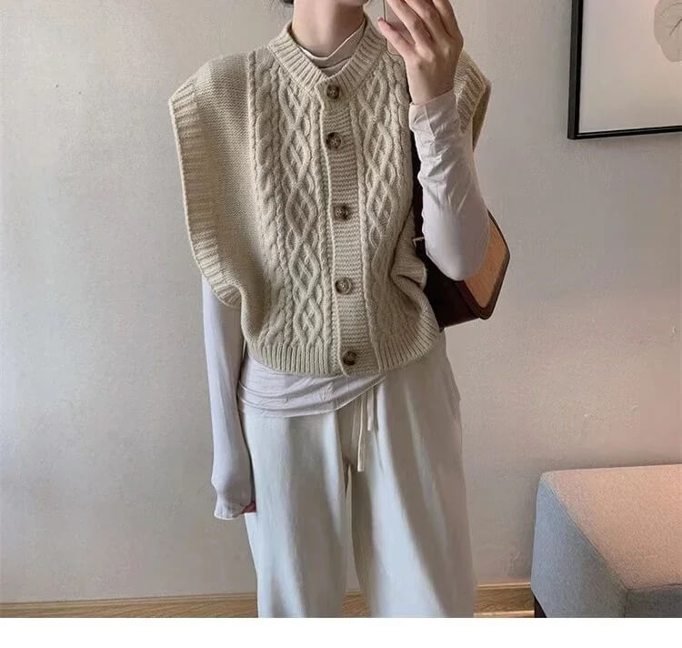Finition Contrastée : Les gros boutons sur le devant ne sont pas seulement fonctionnels ; ils apportent une touche visuelle forte qui signe l'allure unique de ce gilet.