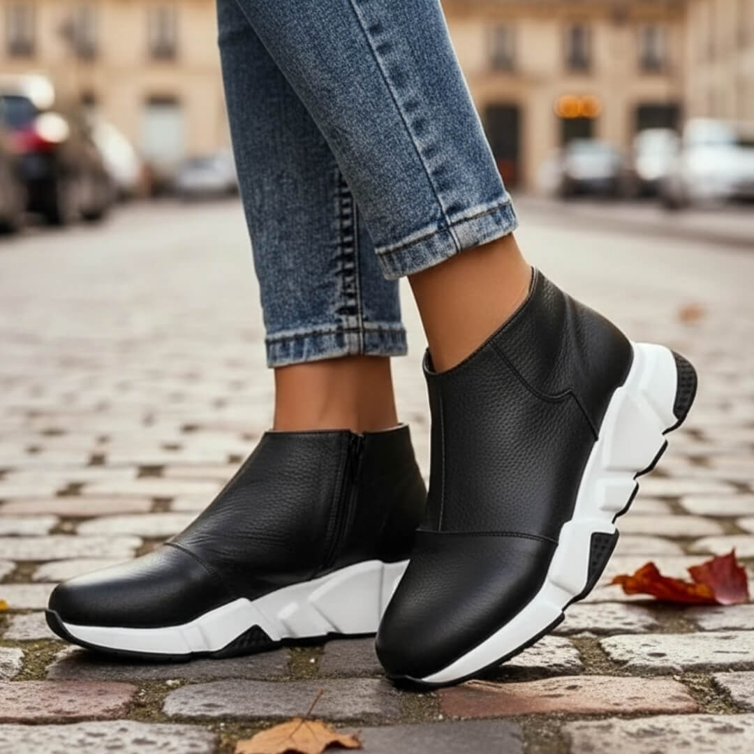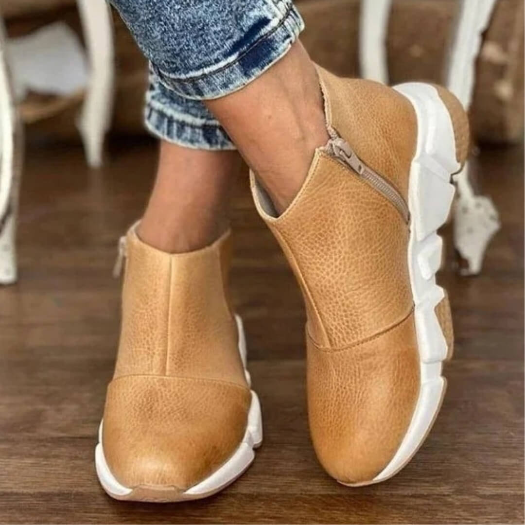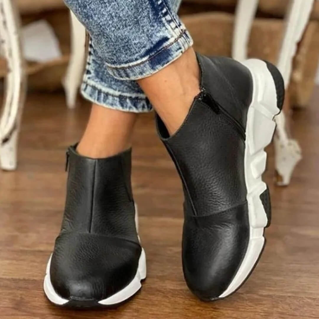 Enfilage Simplifié : La fermeture zippée latérale est la touche de génie pratique : enfilez et retirez vos baskets en un instant, sans jamais défaire vos lacets.