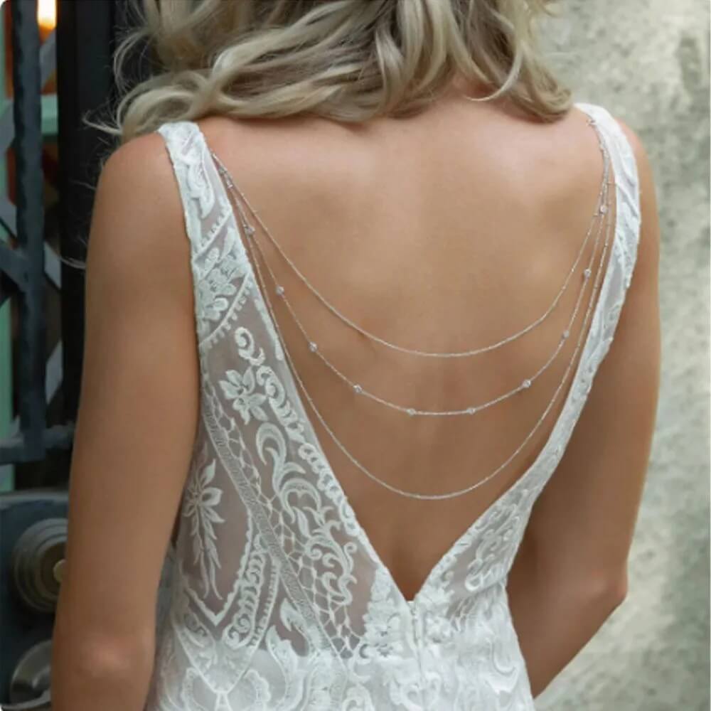 Design en Cascade : Trois rangs de chaînes fines créent un mouvement fluide et gracieux qui habille et met en valeur votre dos.