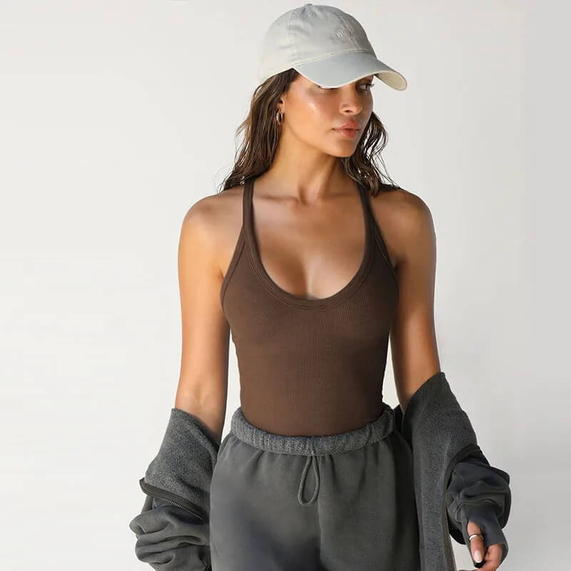 Silhouette Polyvalente :L'encolure arrondie dégagée met subtilement en valeur le port de tête, faisant de ce débardeur une pièce aussi performante pour le sport qu'élégante au quotidien.