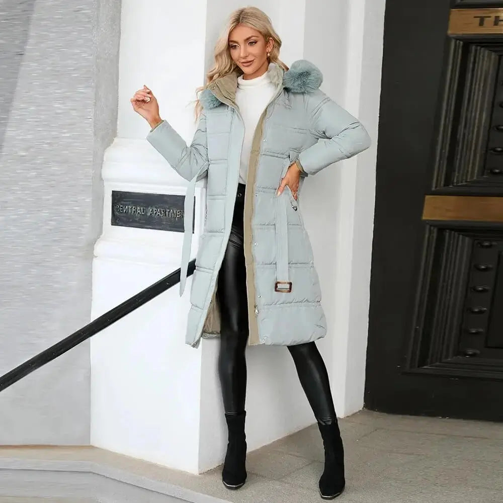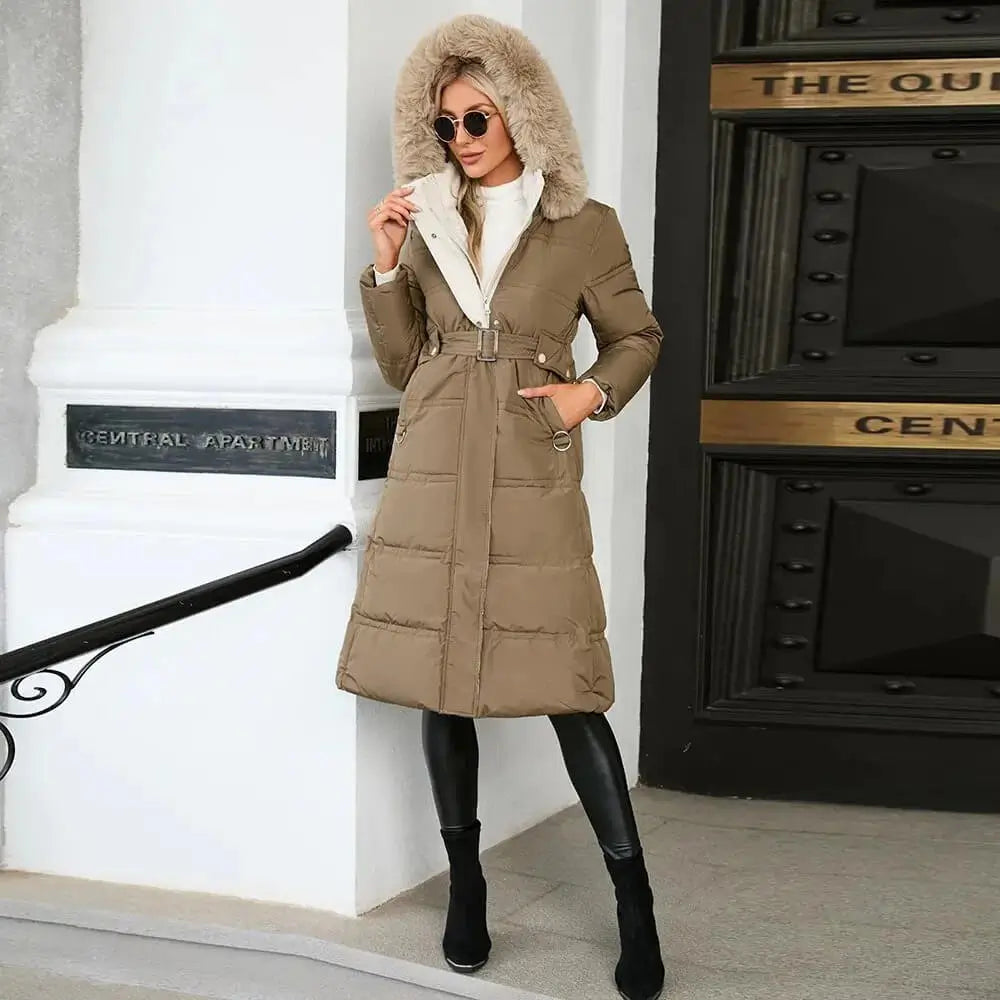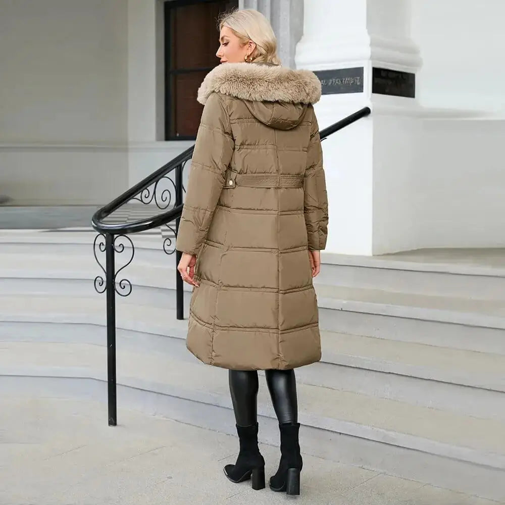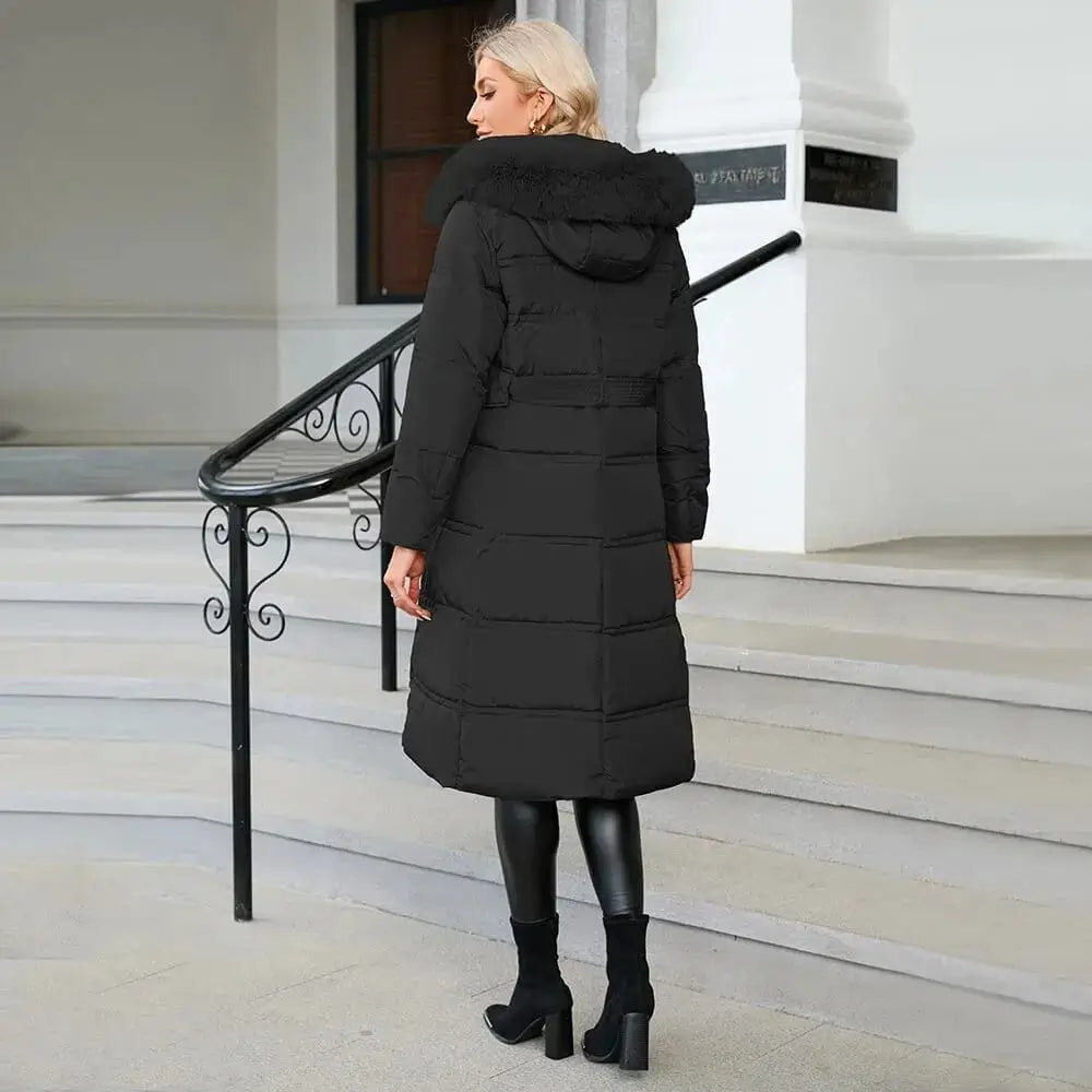 Protection intégrale : Sa coupe longue matelassée, complétée par une capuche enveloppante bordée de fausse fourrure, vous assure une barrière efficace contre le vent et les basses températures.