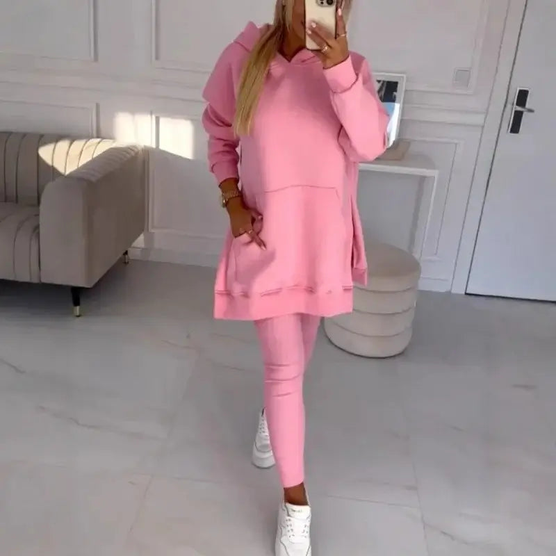 L’ensemble Cocoon Loréane marie douceur et modernité dans une coupe fluide et harmonieuse. Composé d’un sweat long à capuche et d’un legging taille haute, il offre un équilibre parfait entre décontraction et élégance naturelle. Un essentiel du quotidien pour se sentir bien tout en restant stylée.