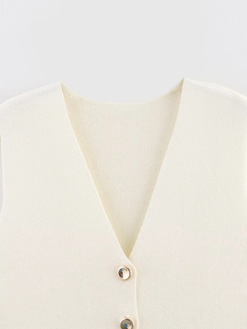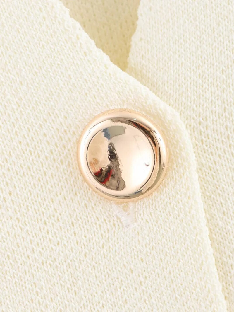Touche précieuse : Une rangée de boutons dorés illumine le design, servant à la fois de fermeture fonctionnelle et de détail joaillerie.
