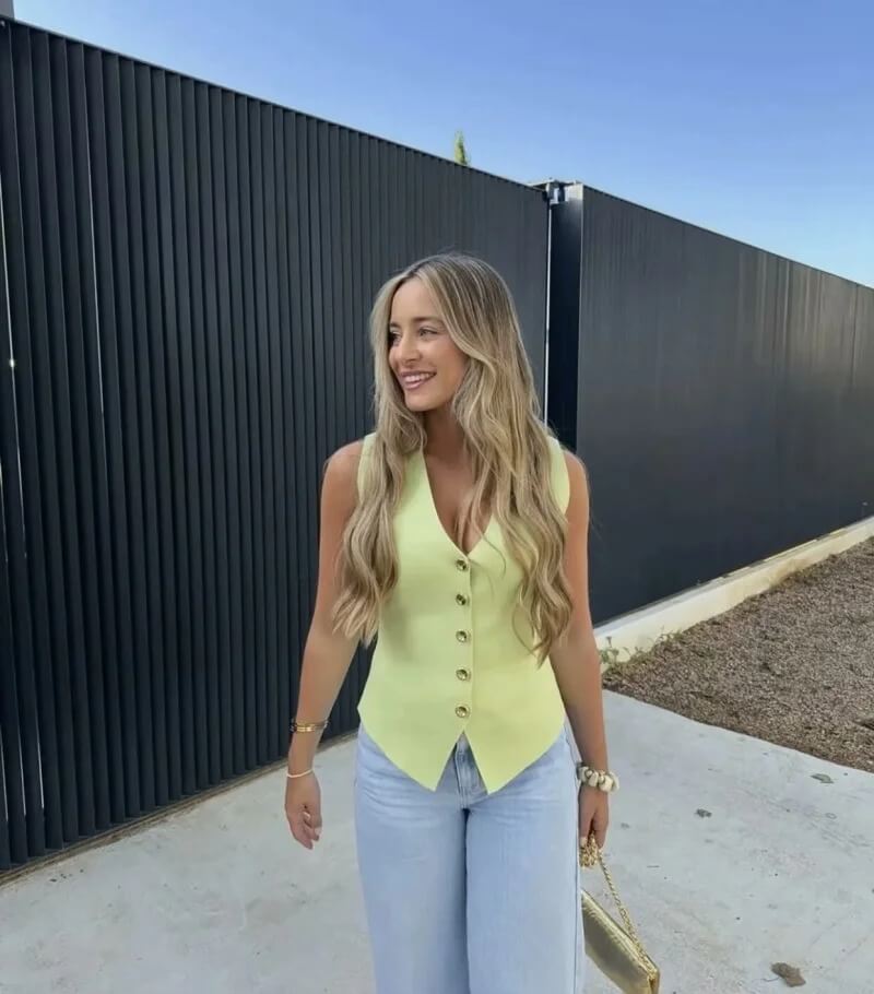 Découvrez le gilet Équinoxe, la pièce maîtresse qui sculpte la silhouette avec une précision impeccable. Conçu pour la femme moderne, il allie une coupe rigoureuse à des détails féminins pour une allure affirmée et raffinée en toute occasion.
