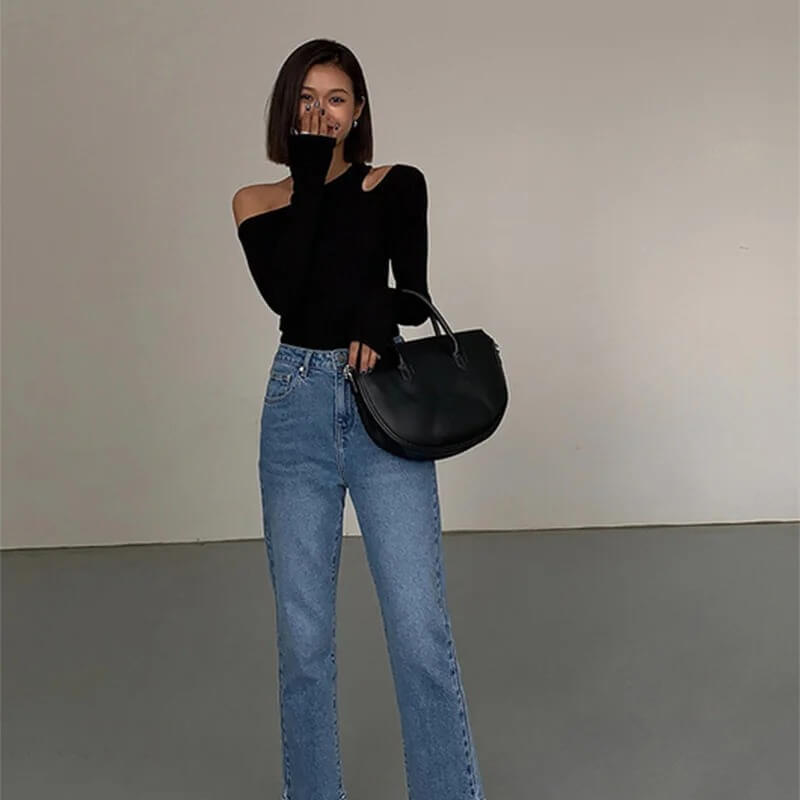 Design Asymétrique Tendance : Son encolure unique avec une épaule dénudée apporte une touche de modernité et de sophistication, parfaite pour attirer les regards avec subtilité.
