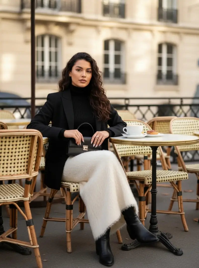 Silhouette sublimée : Sa coupe longue et légèrement évasée sur le bas accompagne vos mouvements avec fluidité, allongeant la silhouette pour une allure structurée et raffinée.