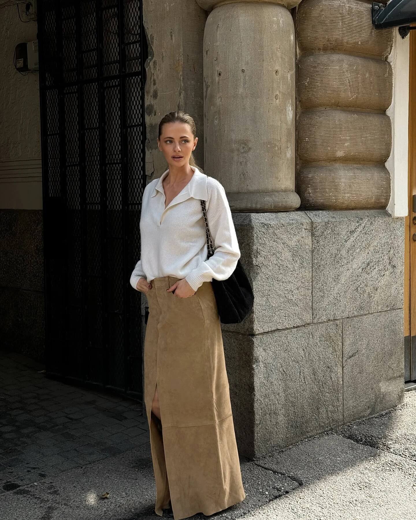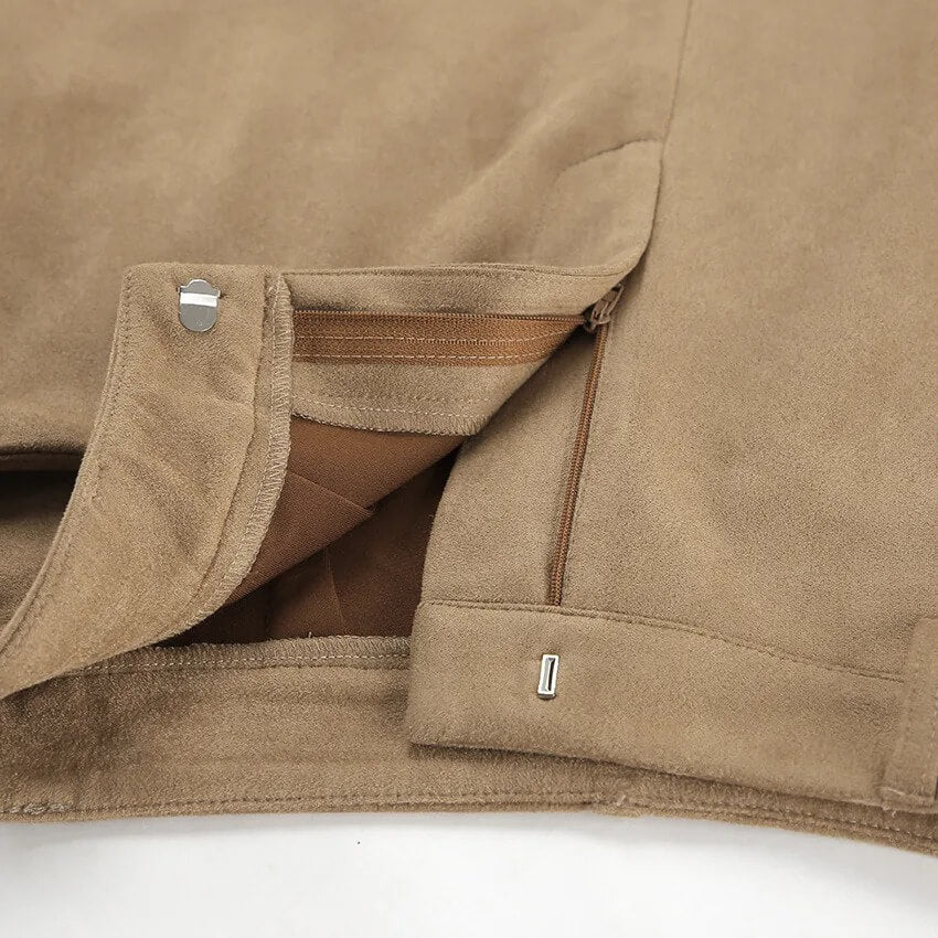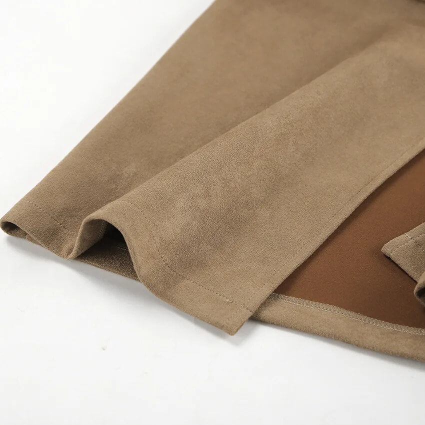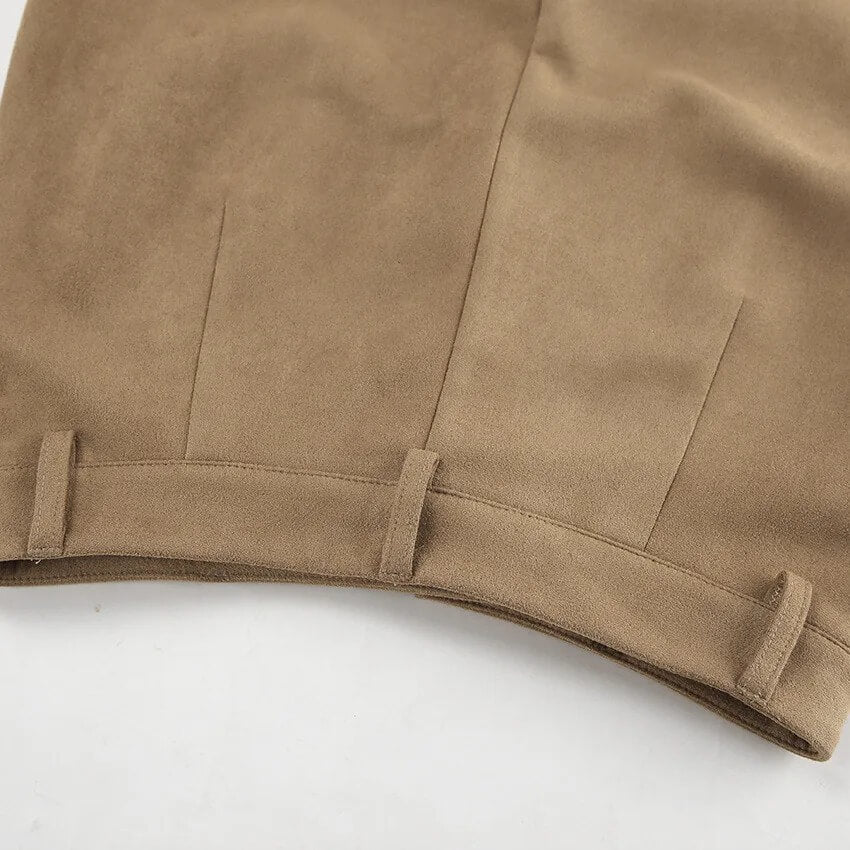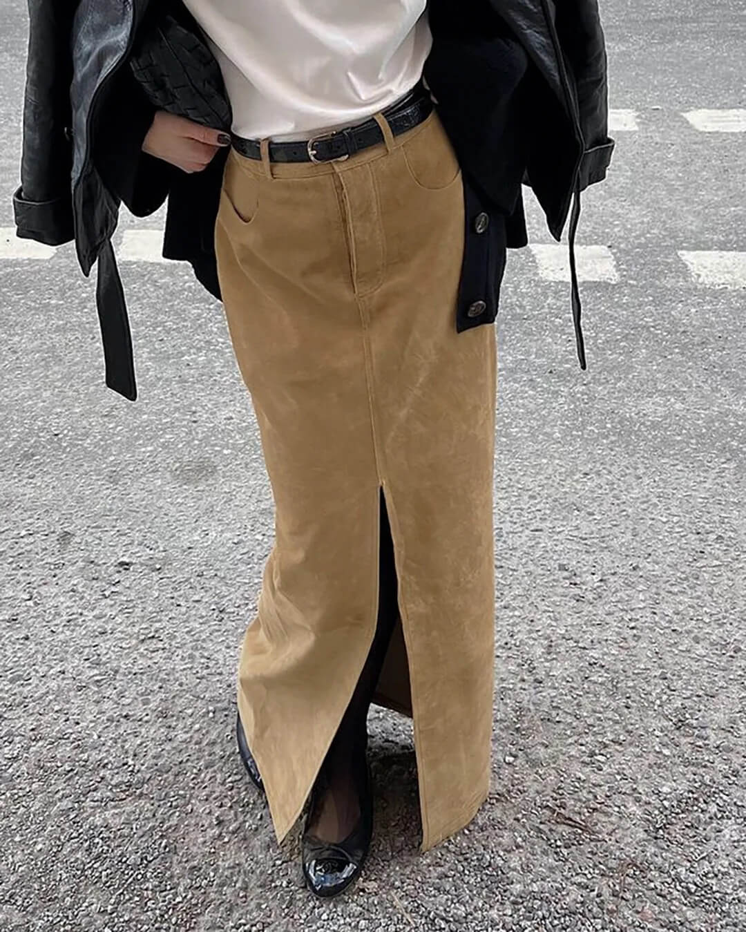 Une silhouette allongée : Sa coupe droite taille haute dessine et allonge la jambe, tandis que la fente frontale apporte une touche de modernité et une liberté de mouvement incomparable.