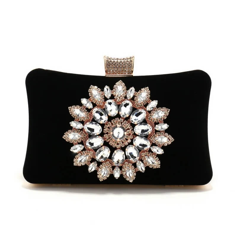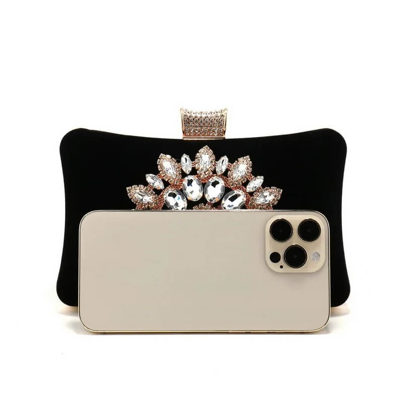 Structure Élégante et Sécurisée : Sa forme rectangulaire rigide protège vos effets personnels, tandis que le fermoir cliquet incrusté de strass assure une fermeture fiable avec une touche de raffinement.