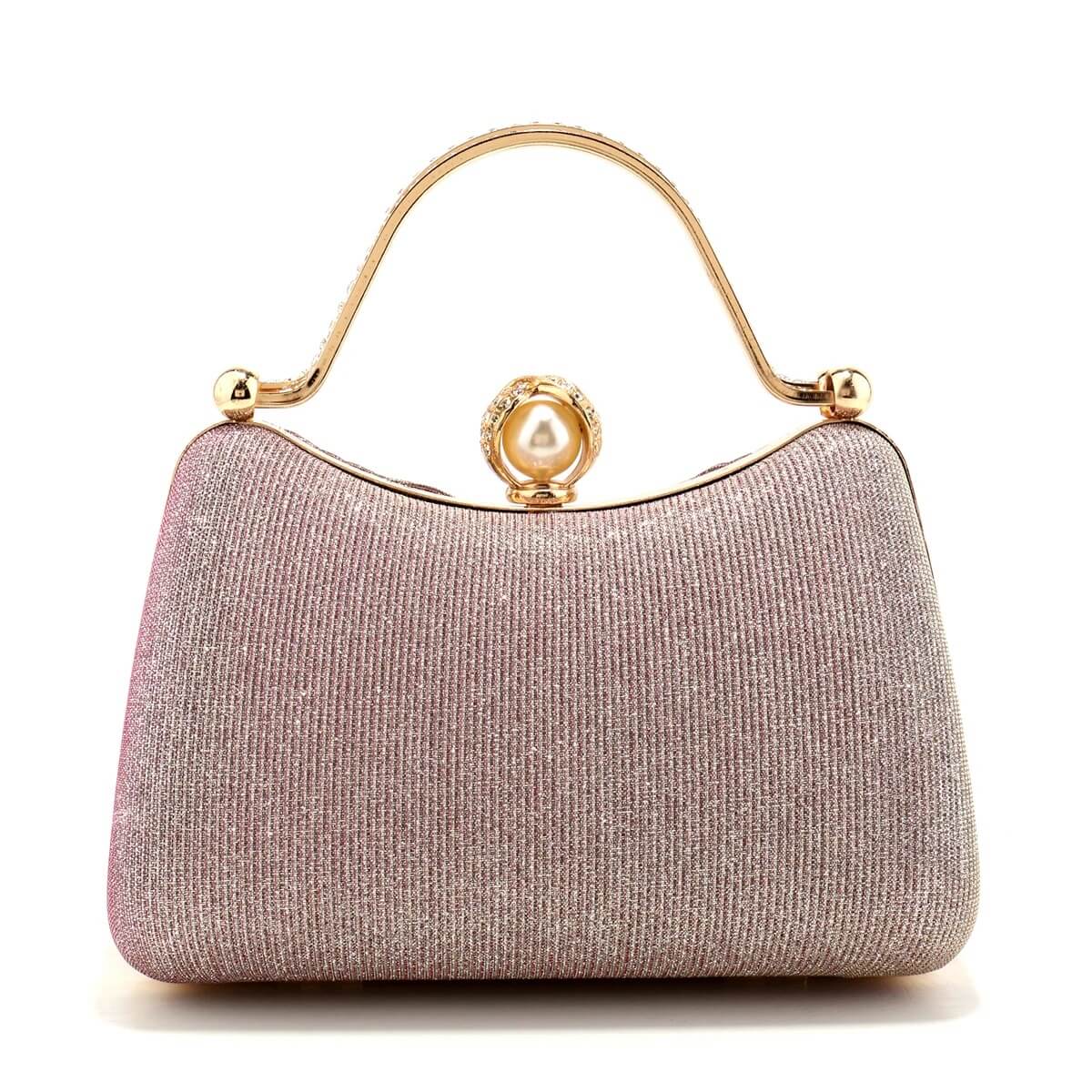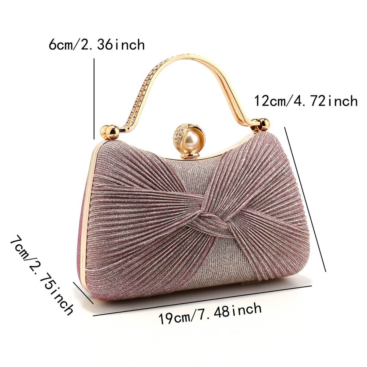 Composition : Polyester satiné/plissé : 55 % Alliage métallique doré (poignée, cadre, fermoir) : 35 % Détail perle synthétique : 10 %
