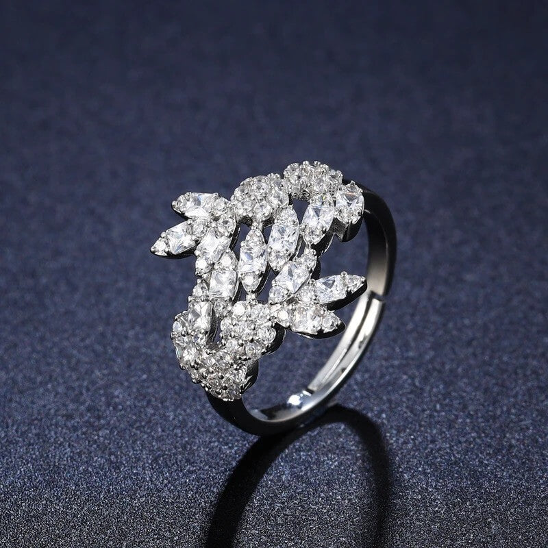 Un Design Scintillant : Les pierres étincelantes façon cristal et le délicat design feuillage des boucles d'oreilles captent la lumière à chaque mouvement pour un effet visuel spectaculaire.