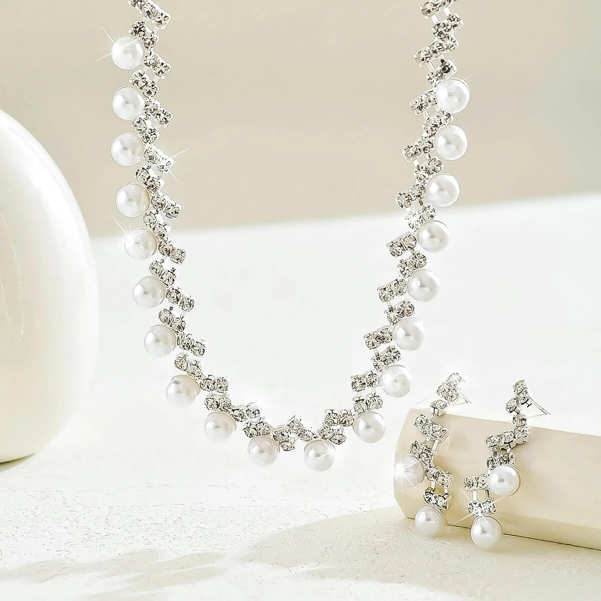 Découvrez la parure Mirabelle, un ensemble harmonieux conçu pour sublimer chaque instant. L'alliance délicate des perles et des strass crée une pièce maîtresse qui illumine votre décolleté et votre visage avec une grâce inégalée.