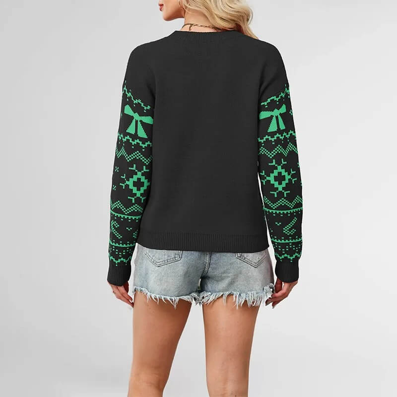 Motifs jacquard festifs : Le tricotage précis dessine des motifs de saison avec une finesse remarquable, pour une allure joyeuse et distinguée.
