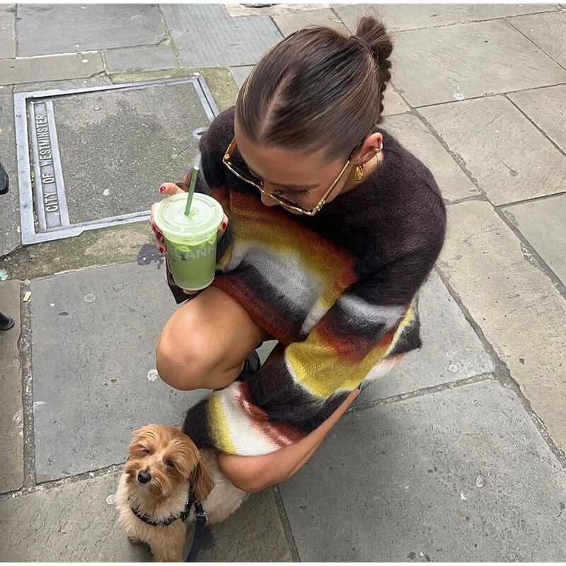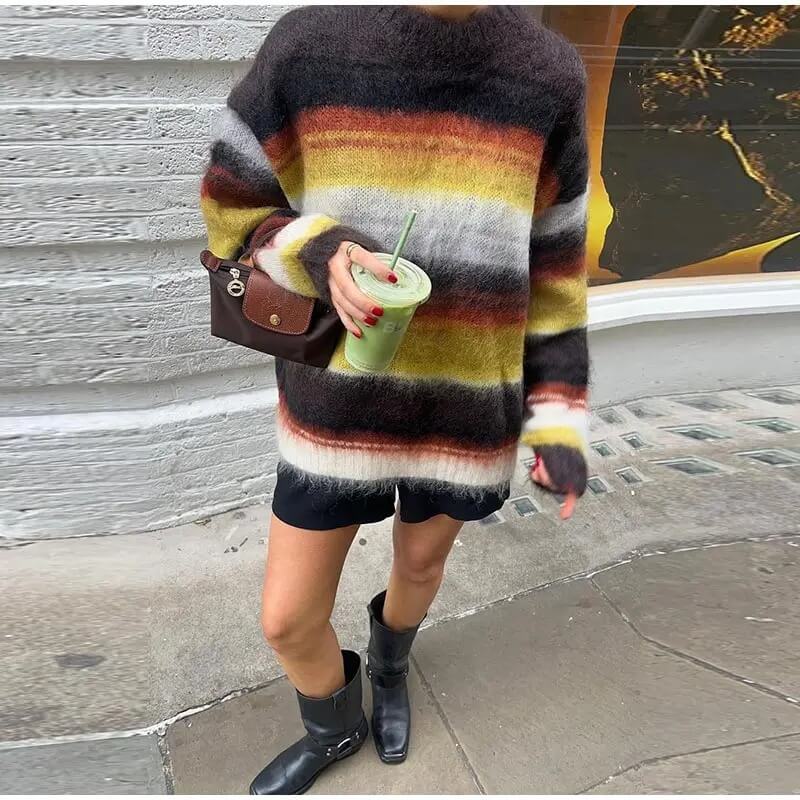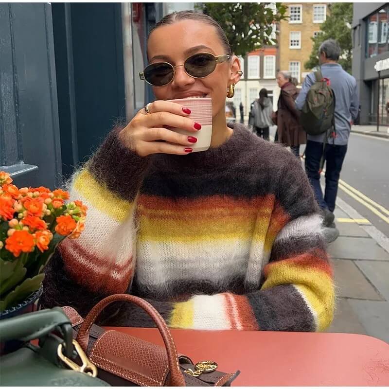 Design Graphique et Tendance : Les larges rayures multitonales structurent la silhouette et apportent une touche de modernité audacieuse à vos tenues, du jean décontracté à la jupe plus habillée.