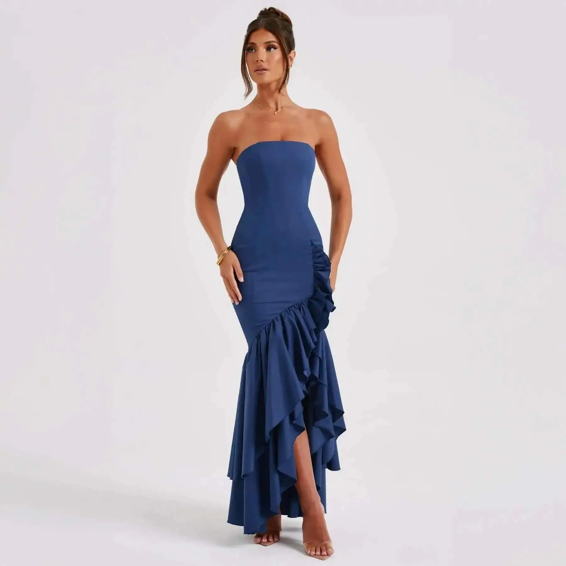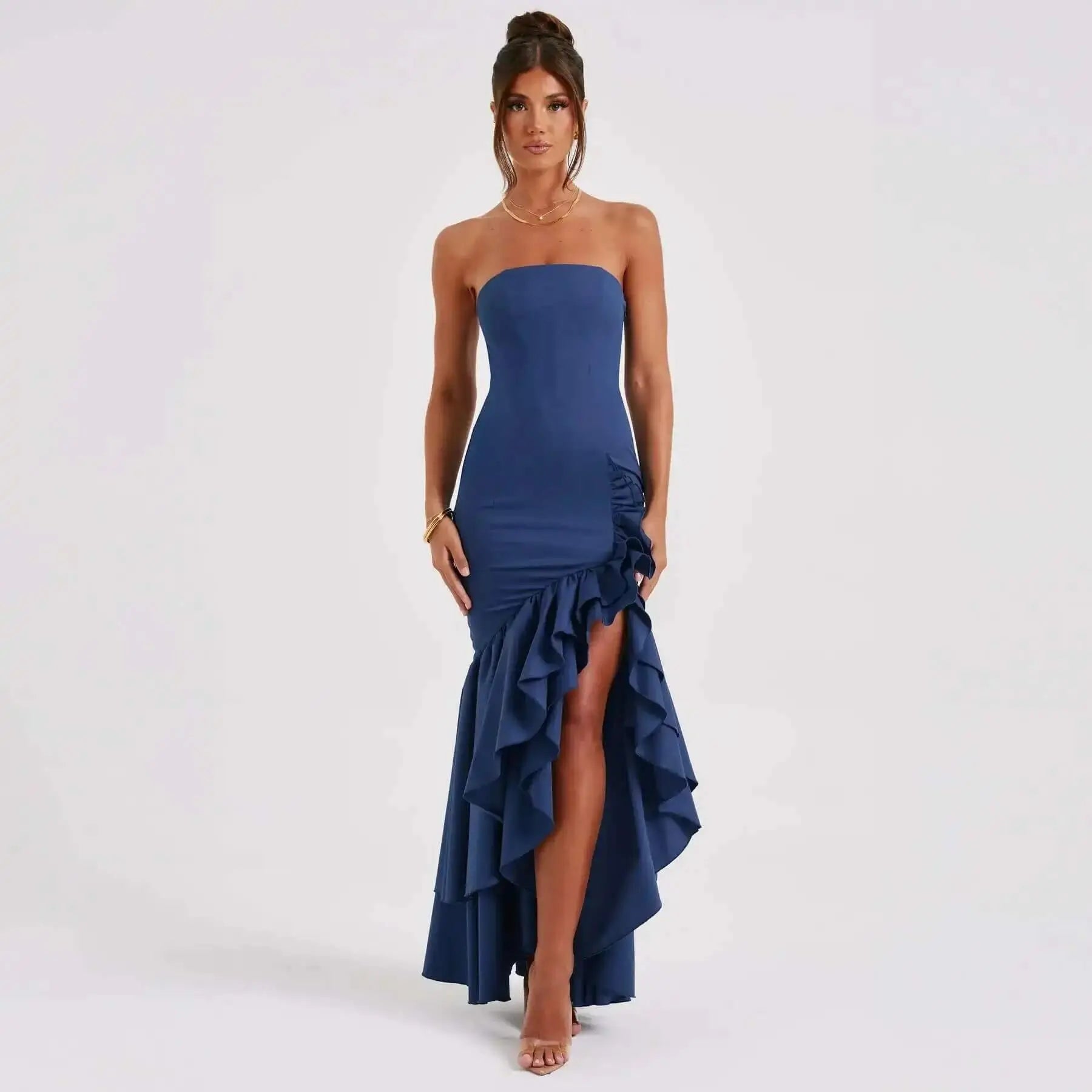 Mouvement Fluide : La jupe asymétrique, sublimée par une cascade de volants délicats, accompagne chacun de vos pas avec grâce et légèreté.