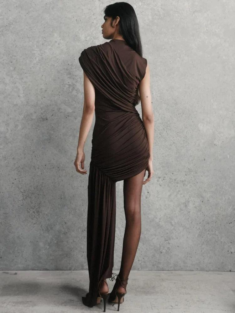 Design Asymétrique Tendance : La manche unique et l'encolure montante apportent une touche contemporaine audacieuse, créant une ligne visuelle captivante qui allonge la silhouette.