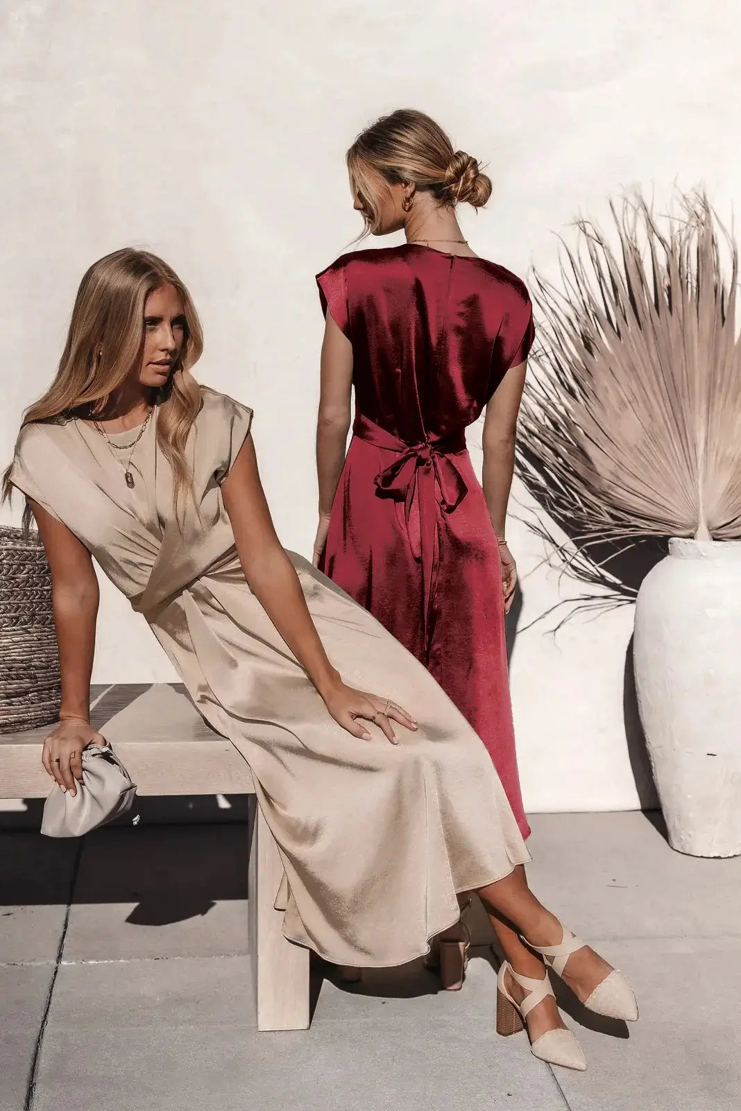 Silhouette Sublimée : La ceinture délicate à nouer dans le dos marque subtilement la taille, dessinant une silhouette féminine et harmonieuse sans jamais contraindre.