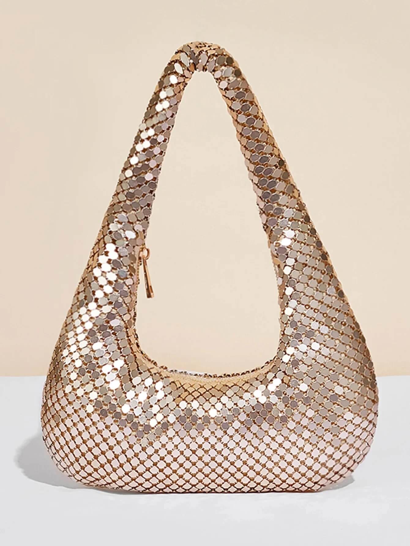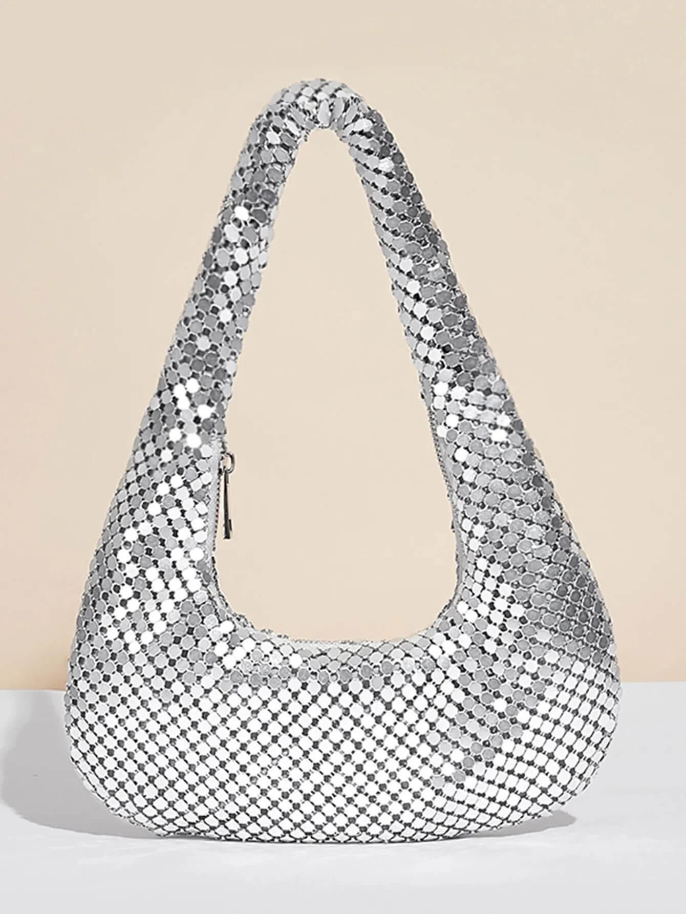 Texture Maille Scintillante : Un revêtement entièrement orné de sequins qui crée un effet de maille métallique unique, captant la lumière à chaque mouvement pour un éclat spectaculaire.