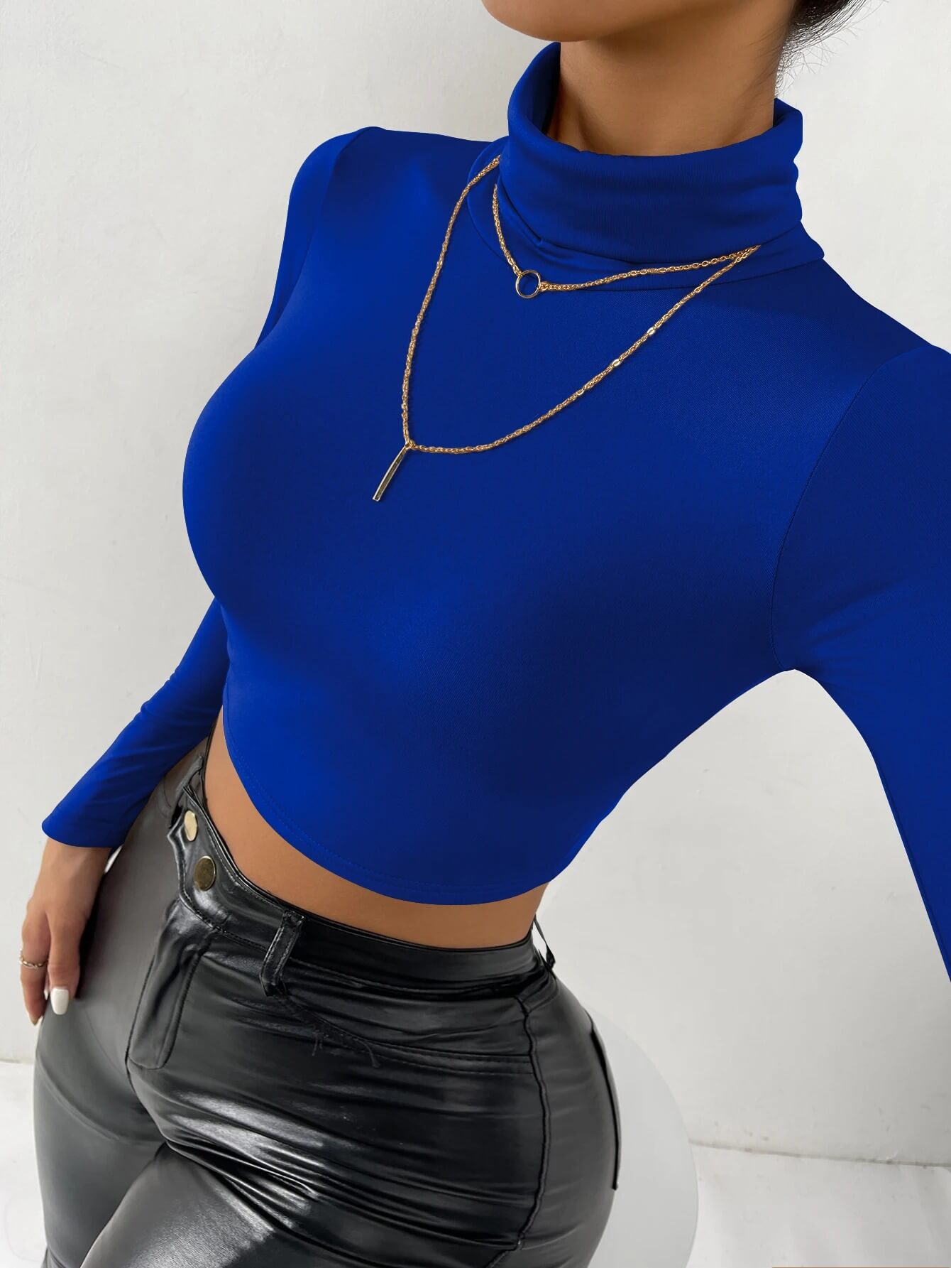 Design Crop Moderne : Une longueur savamment étudiée pour s'arrêter juste au-dessus de la taille, idéale pour allonger la silhouette et s'associer à vos pantalons et jupes taille haute.